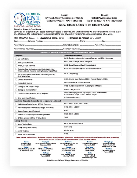 Patient Referral Form for Healthcare ProvidersIf you are in need of business cards, insurance handouts, brochures, and/or printed referral pads, please let us know and we will ensure they are delivered to your office.